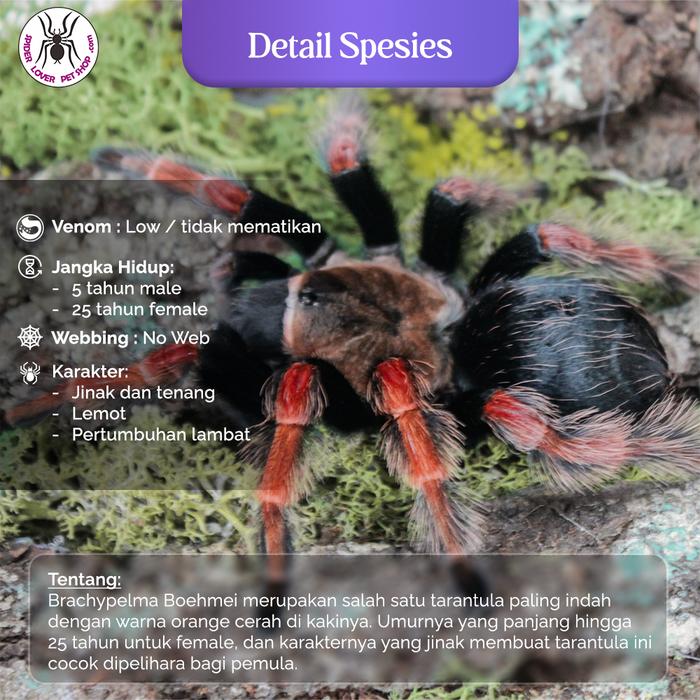 ● Ukuran tidak lebih kecil dari minimal yang disebutkan. Kami memiliki banyak tarantula per jenis, jadi jangan terpaku pada foto. Ukuran mungkin berbeda sedikit dari yang difoto, karena tiap individu berbeda ukurannya sedikit-sedikit, namun secara warna dan perawakan ya sama. Tarantula yang diambil adalah random. Tidak menerima reques foto satu per satu per tarantula!