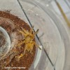 Behavior: Don’t be fooled by her beauty, as she is very defensive. The spider will try to flee at first. Persistent provocation can result in a bite, something you don’t want to happen. Pterinochilus murinus is known to make very beautiful webs as well, equiped with lots of entries and a long, either invisible web on the surface to locate prey quickly as they grow older. The webbings are a true pleasure to watch.
