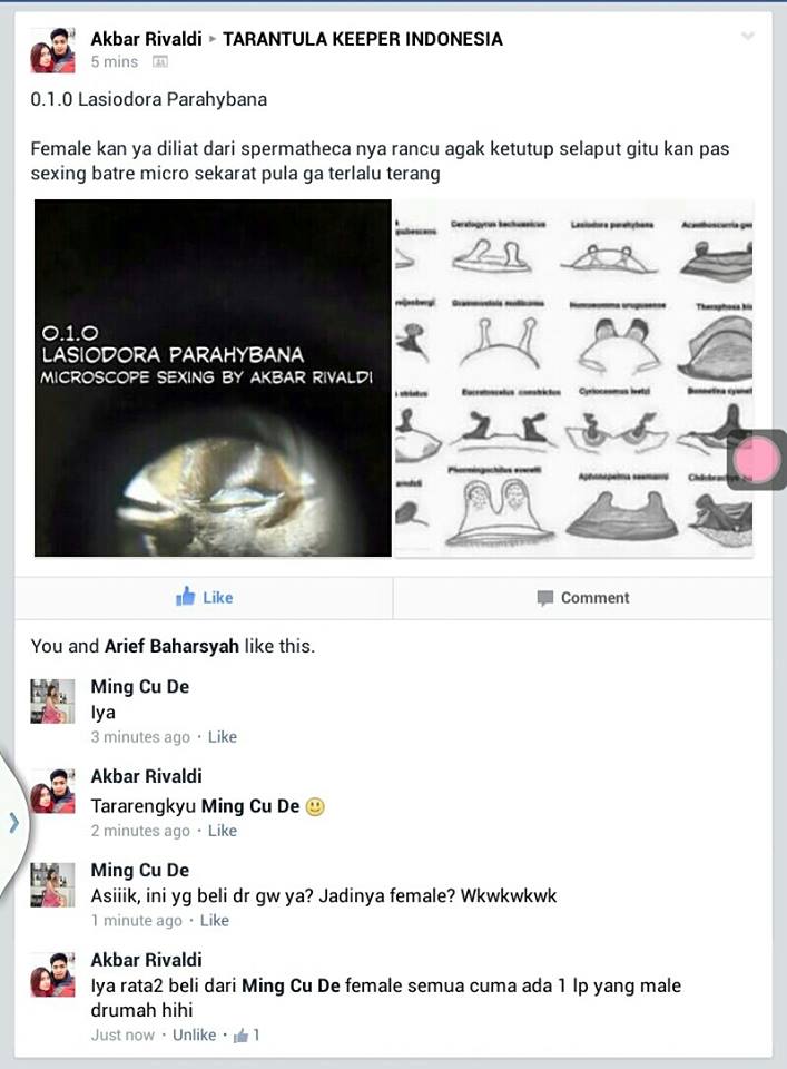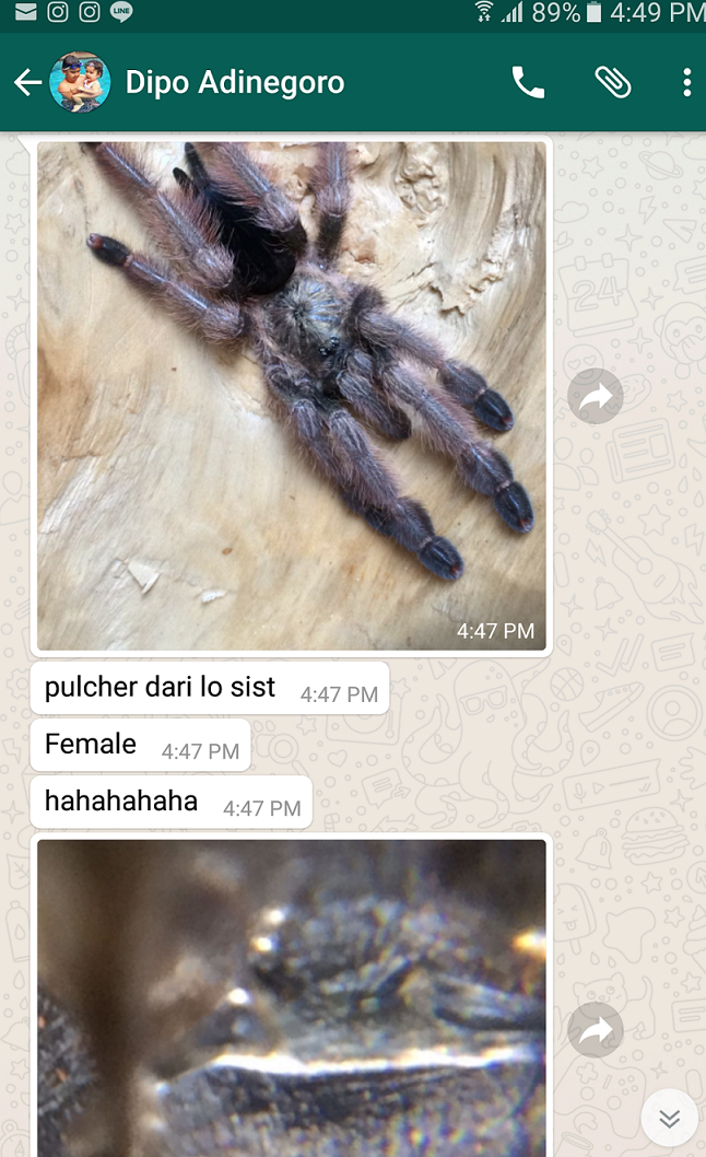 Sebagai pecinta tarantula sejati, pantang tarantulanya dijadikan obat atau ajang adu atau buat ngagetin teman atau hal-hal lain yang membahayakan tarantulanya.
