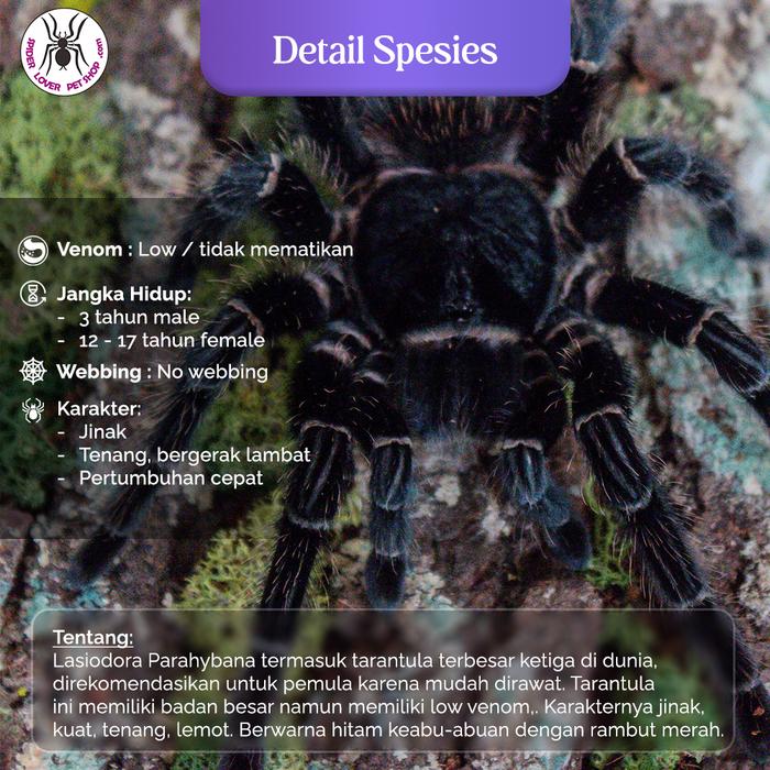 ● Ukuran tidak lebih kecil dari minimal yang disebutkan. Kami memiliki banyak tarantula per jenis, jadi jangan terpaku pada foto. Ukuran mungkin berbeda sedikit dari yang difoto, karena tiap individu berbeda ukurannya sedikit-sedikit, namun secara warna dan perawakan ya sama. Tarantula yang diambil adalah random. Tidak menerima reques foto satu per satu per tarantula!