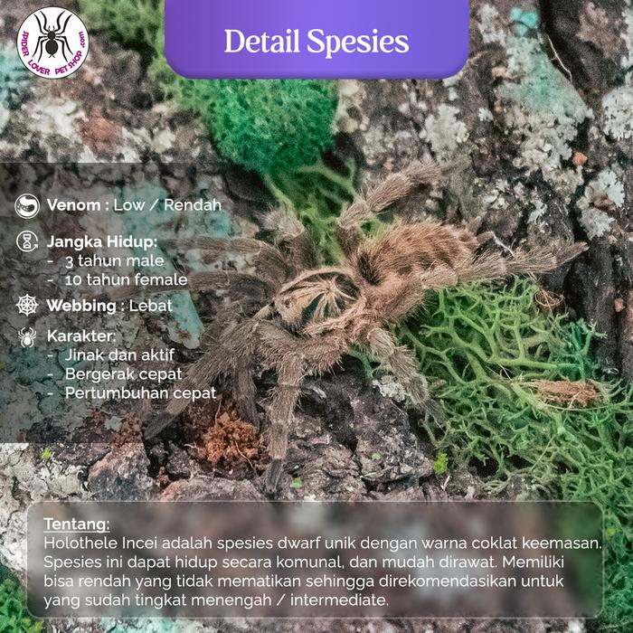 ● Ukuran tidak lebih kecil dari minimal yang disebutkan. Kami memiliki banyak tarantula per jenis, jadi jangan terpaku pada foto. Ukuran mungkin berbeda sedikit dari yang difoto, karena tiap individu berbeda ukurannya sedikit-sedikit, namun secara warna dan perawakan ya sama. Tarantula yang diambil adalah random. Tidak menerima reques foto satu per satu per tarantula!