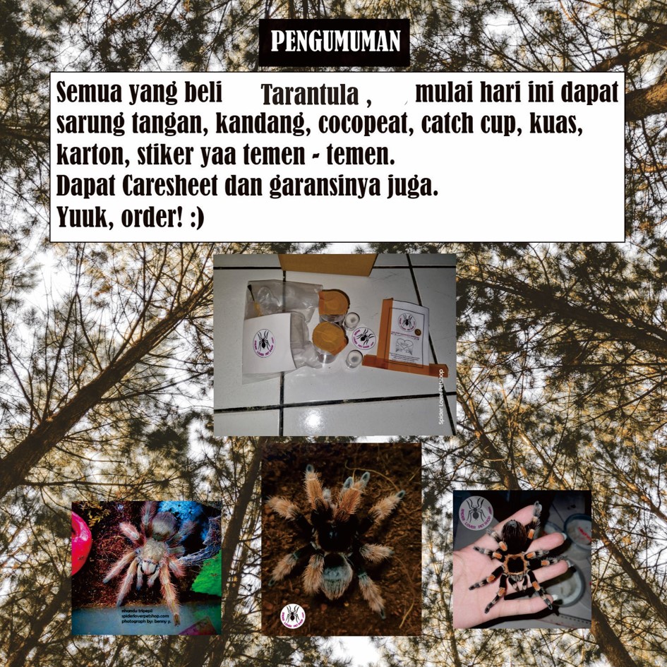 ● Perawatan diberi setelah pembelian, sebelum dikirim tarantula dicek terlebih dahulu, packing aman tidak sembarangan.