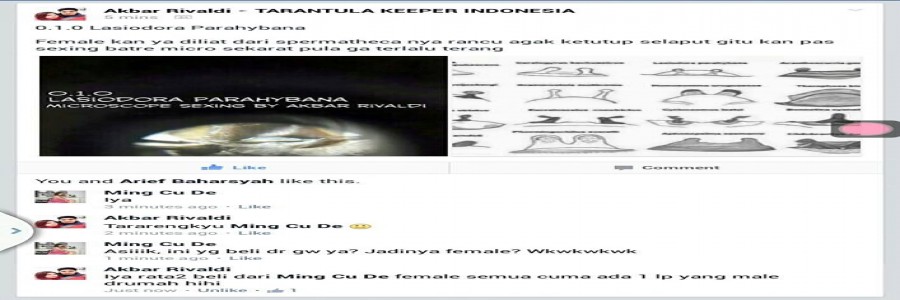 Akbar: Female kan ya diliat dari spermatheca nya rancu agak ketutup selaput gitu kan pas sexing batre micro sekarat pula ga terlalu terang (Female right? seen from the spermatheca membrane but I am not confident because when I sexed it, my micro battery dying anyway so not too bright)